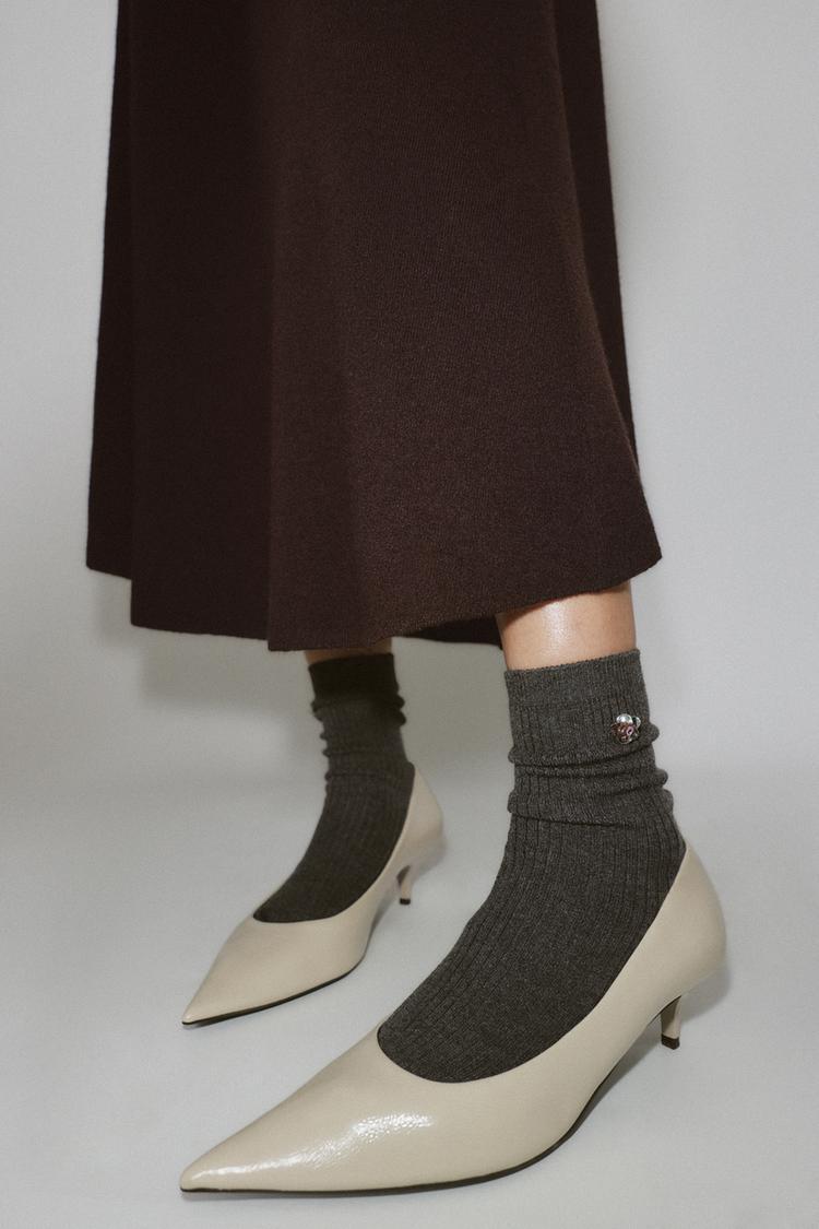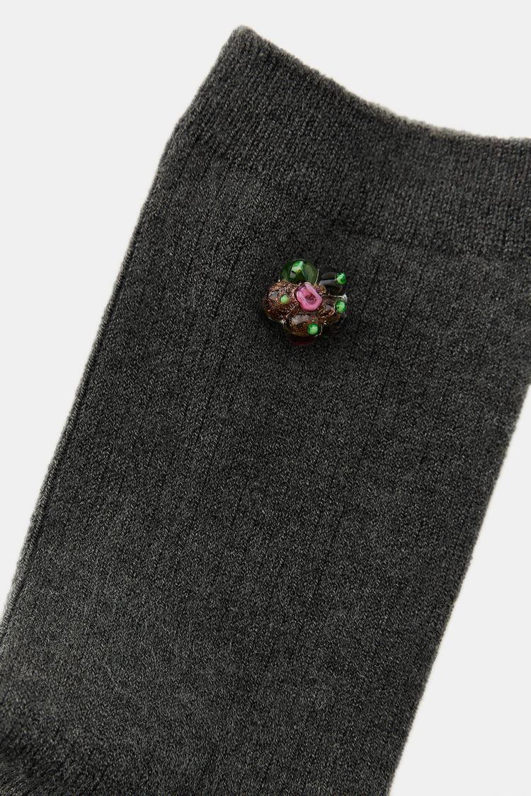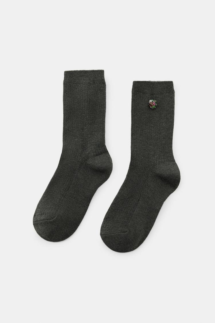 ZARA НОСКИ С ЦВЕТКОМ И КРИСТАЛЛАМИ, ХАКИ