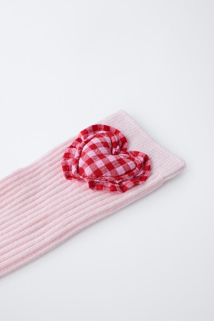 ZARA НОСКИ В КЛЕТКУ ВИШИ С СЕРДЦЕМ, РОЗОВЫЙ