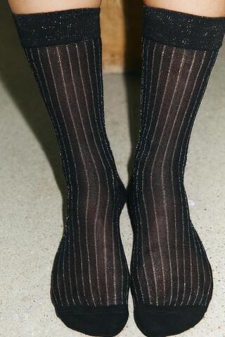 ZARA НОСКИ В ПОЛОСКУ С МЕТАЛЛИЧЕСКОЙ НИТЬЮ, ЧЕРНЫЙ
