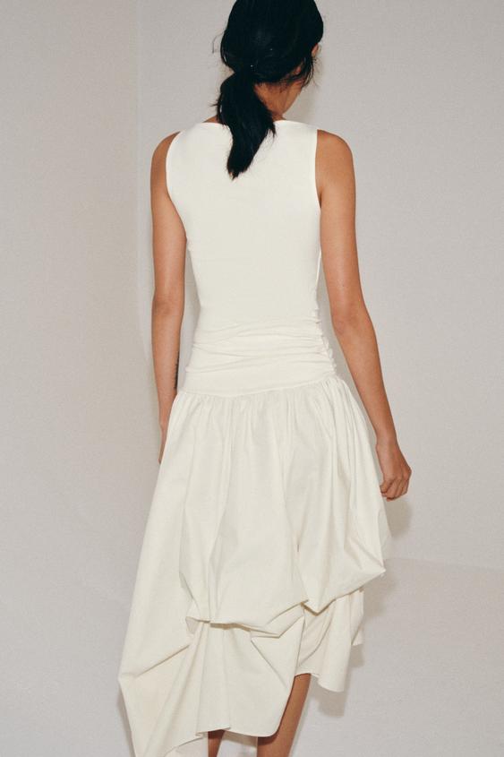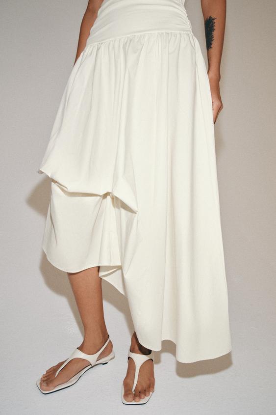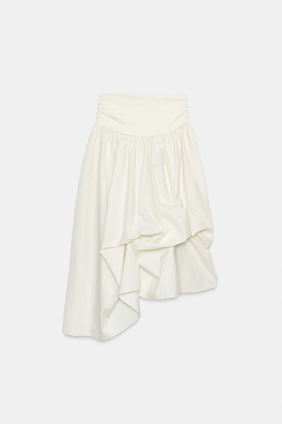ZARA ОБЪЕМНАЯ КОМБИНИРОВАННАЯ ЮБКА, ЭКРЮ