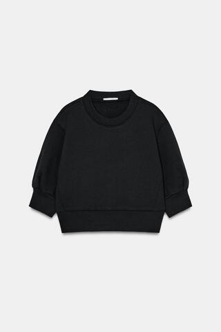 ZARA ОБЪЕМНАЯ УКОРОЧЕННАЯ ТОЛСТОВКА, ЧЕРНЫЙ