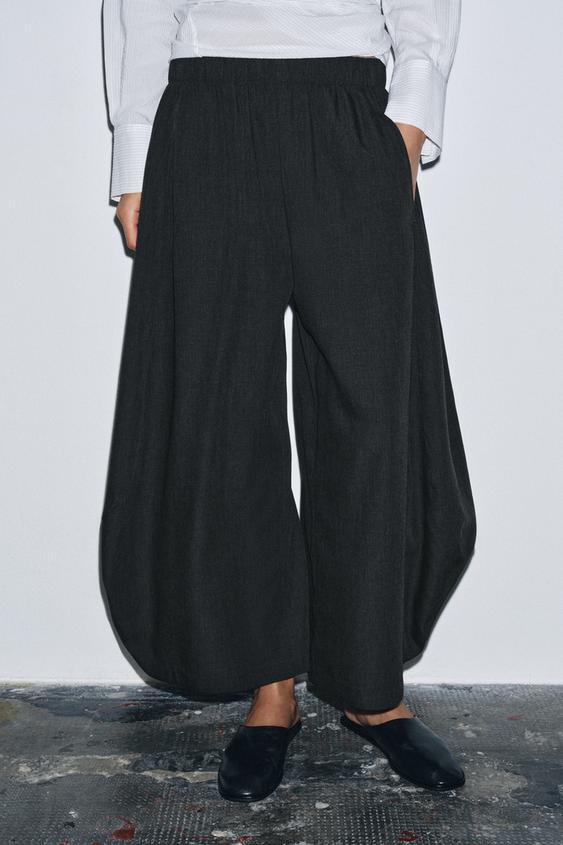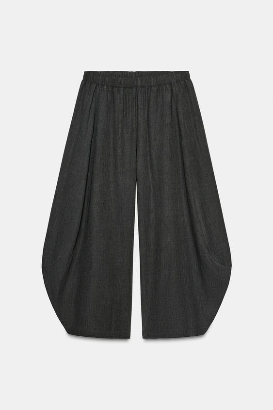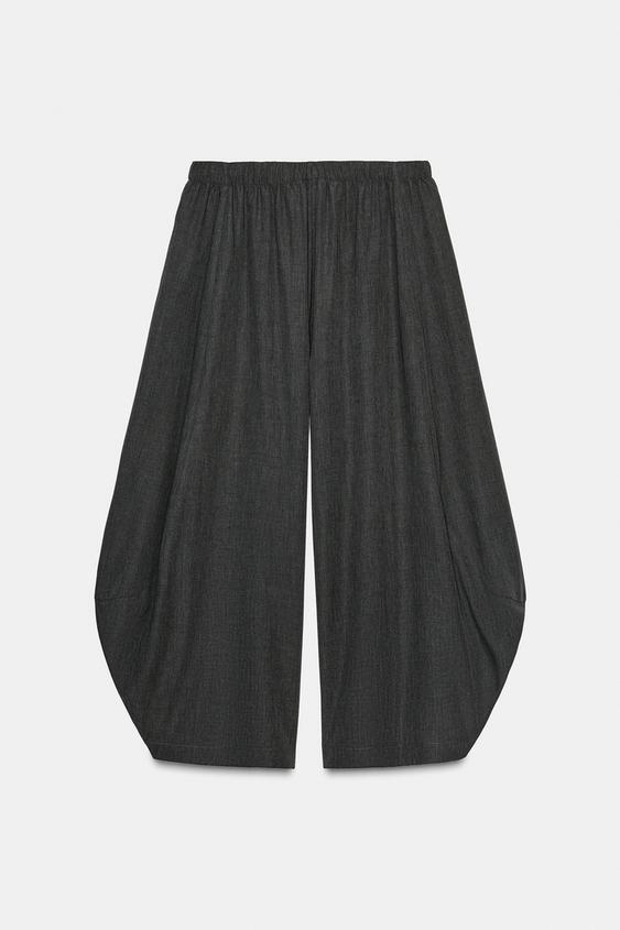 ZARA ОБЪЕМНЫЕ СВОБОДНЫЕ БРЮКИ ИЗ ШЕРСТИ ZW COLLECTION, ТЕМНО-СЕРЫЙ