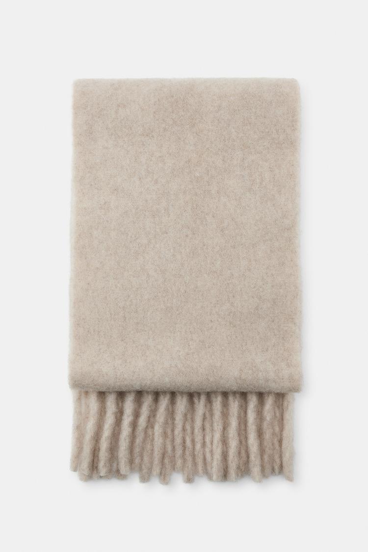 ZARA ОБЪЕМНЫЙ ШАРФ С БАХРОМОЙ, КАМЕННО-СЕРЫЙ