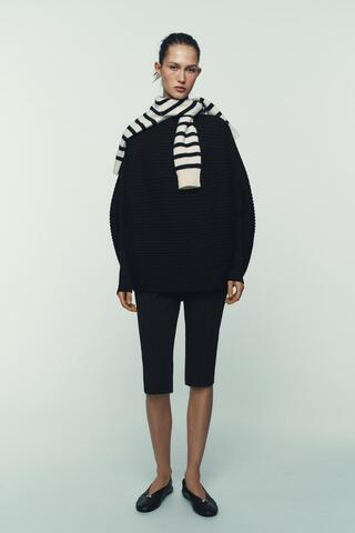 ZARA ОБЪЕМНЫЙ СВИТЕР РЕЛЬЕФНОЙ ВЯЗКИ, ЧЕРНЫЙ