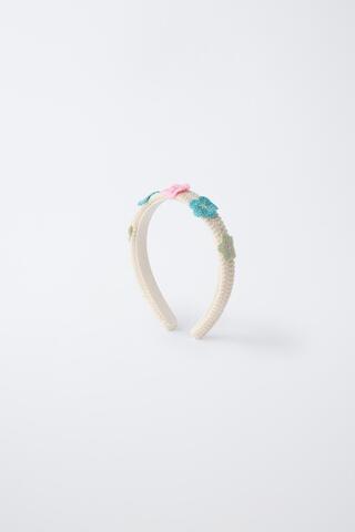 ZARA ОБОДОК КРЮЧКОМ С ЦВЕТАМИ, ЭКРЮ