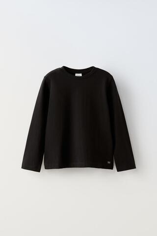 ZARA ОДНОТОННАЯ ФУТБОЛКА, ЧЕРНЫЙ