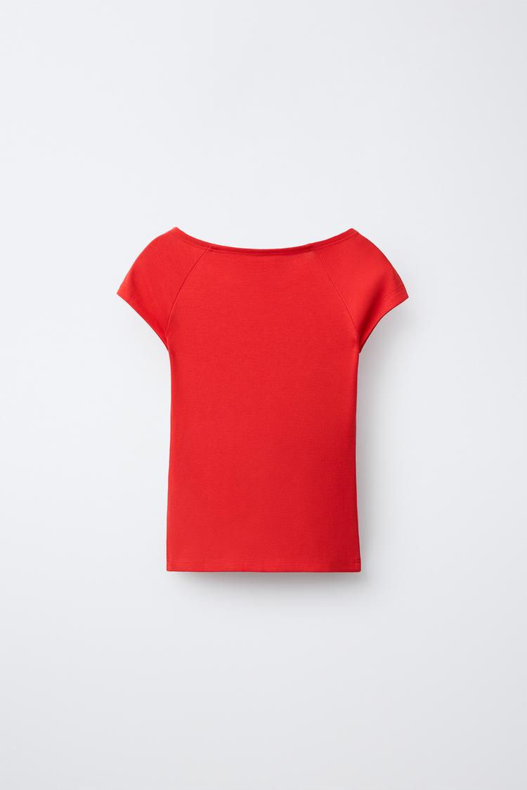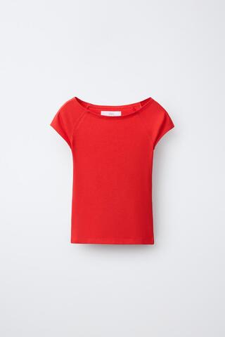 ZARA ОДНОТОННАЯ ФУТБОЛКА ИЗ МОДАЛА, КРАСНЫЙ
