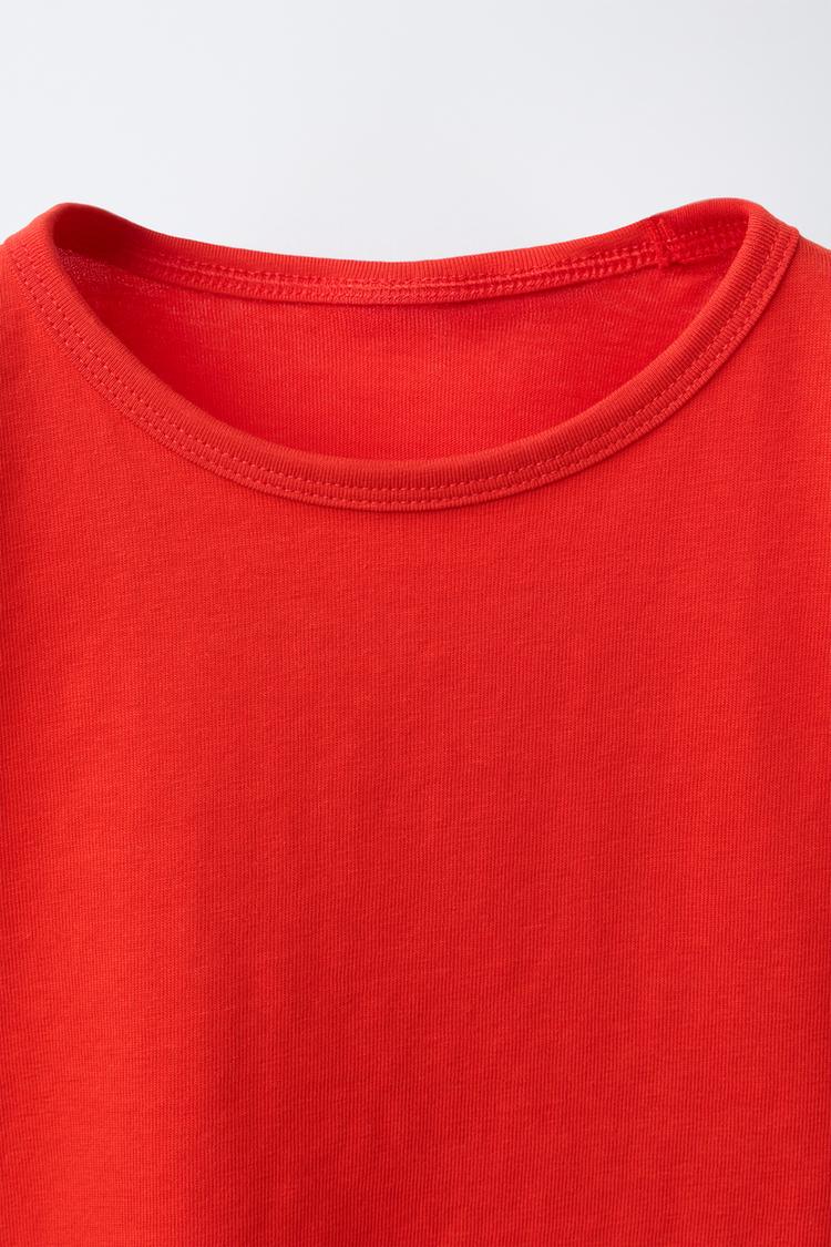 ZARA ОДНОТОННАЯ ФУТБОЛКА, КРАСНЫЙ