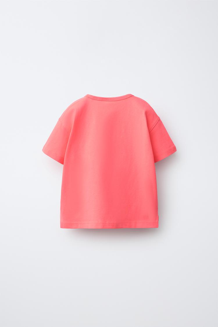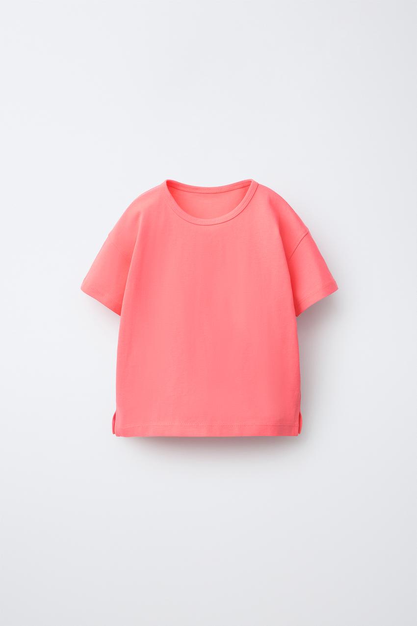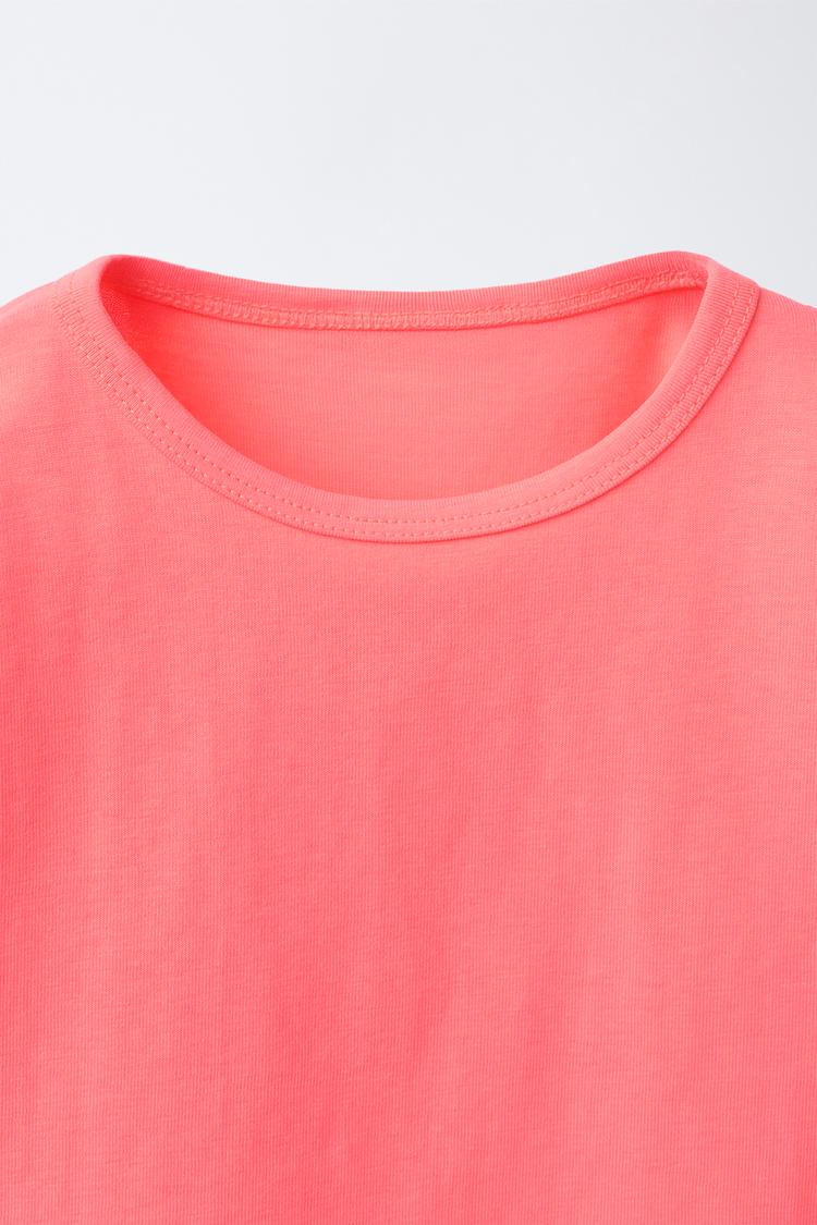 ZARA ОДНОТОННАЯ ФУТБОЛКА, НЕОНОВЫЙ РОЗОВЫЙ