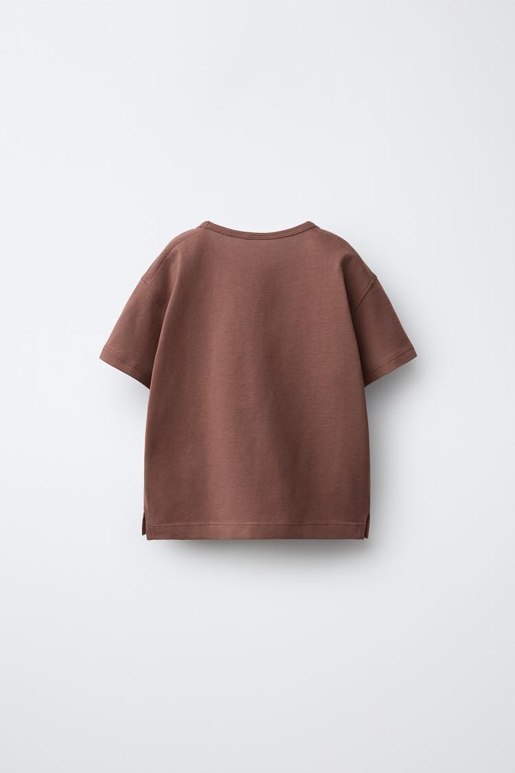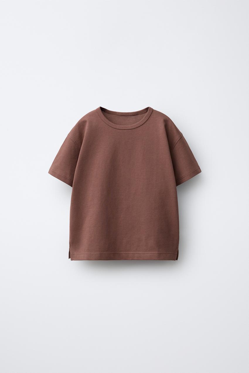 ZARA ОДНОТОННАЯ ФУТБОЛКА, СВЕТЛО-КОРИЧНЕВЫЙ