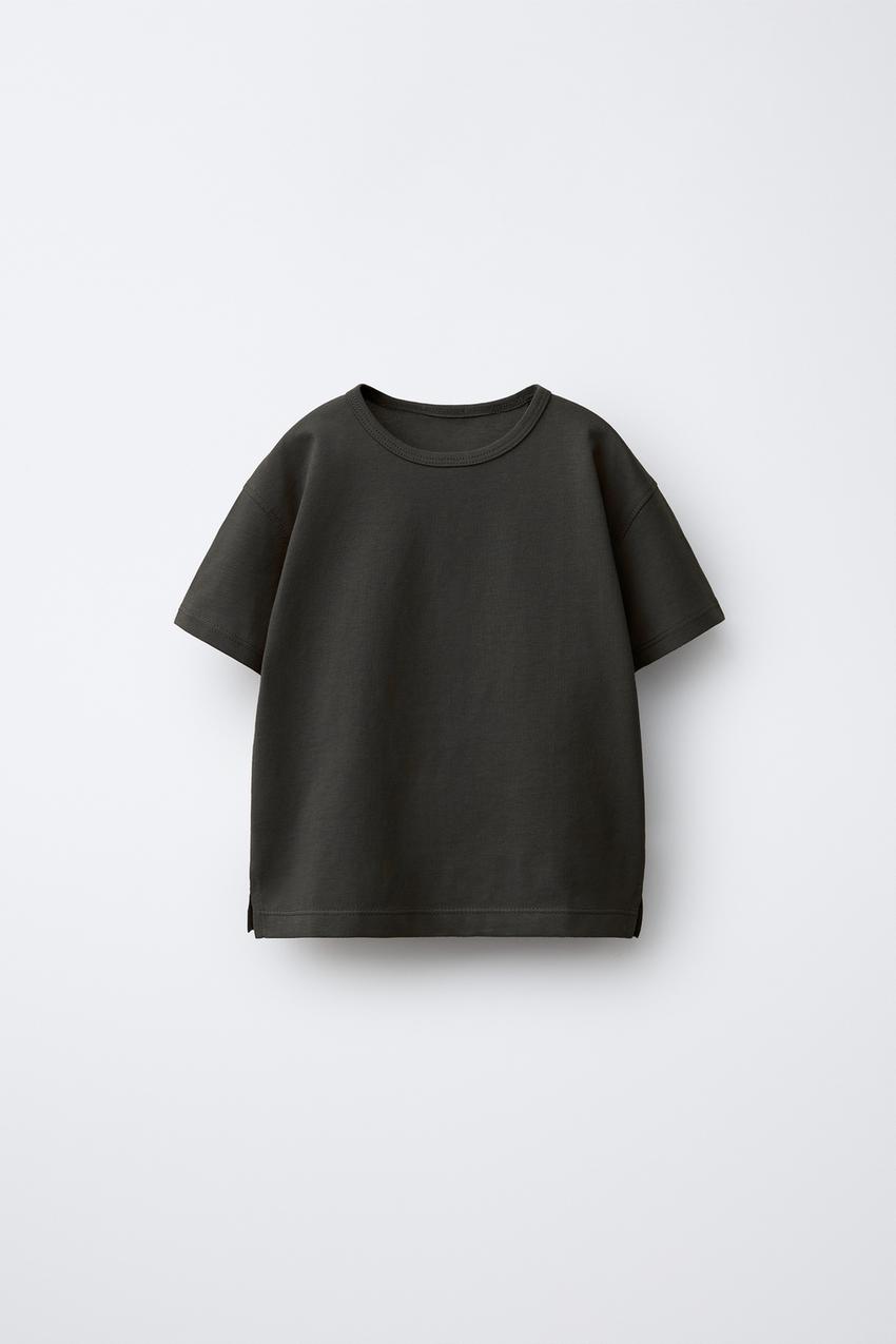 ZARA ОДНОТОННАЯ ФУТБОЛКА, ТЕМНЫЙ АНТРАЦИТ