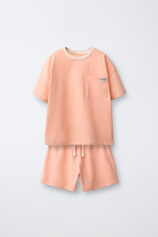 ZARA ОДНОТОННАЯ ПИЖАМА С КАРМАНОМ, ОРАНЖЕВЫЙ