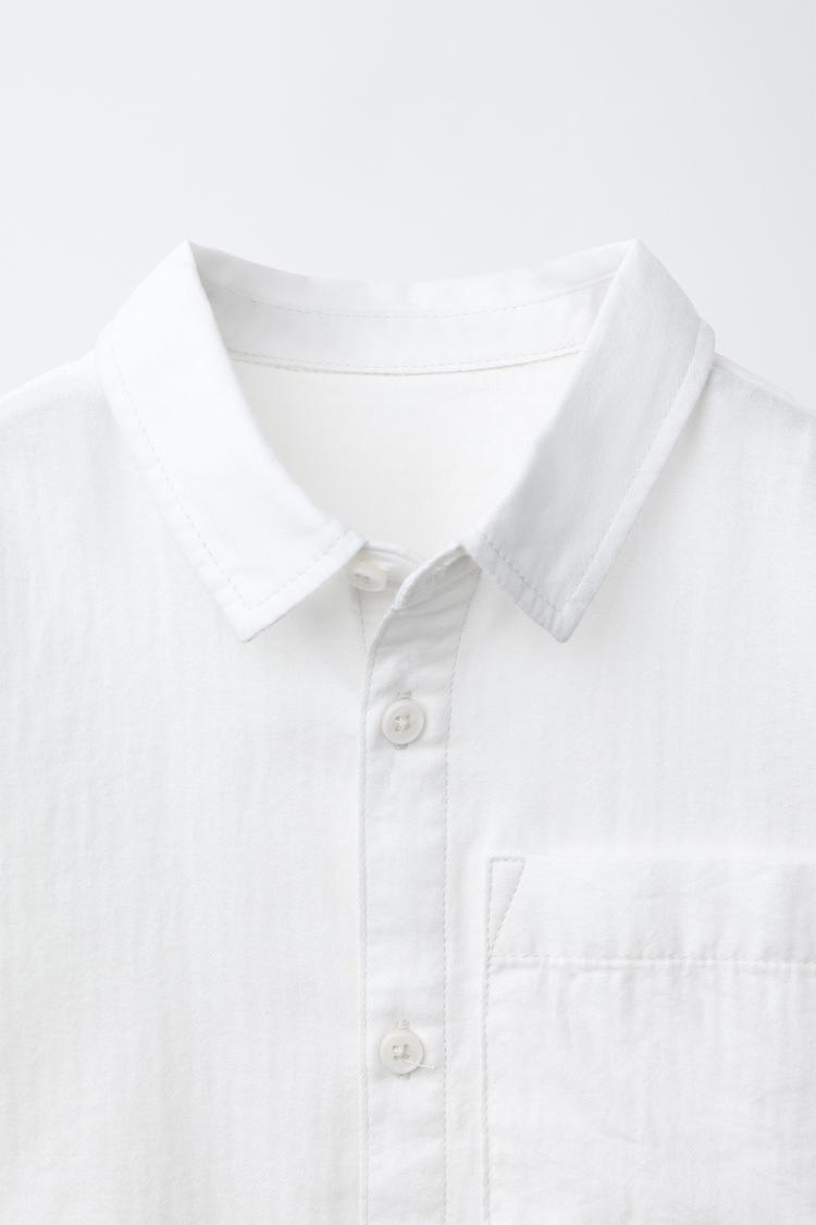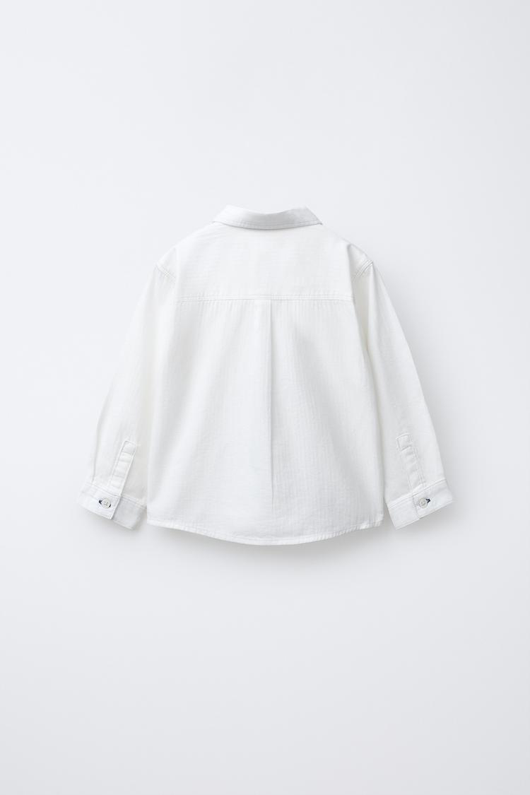 ZARA ОДНОТОННАЯ РУБАШКА С КАРМАНОМ, БЕЛЫЙ