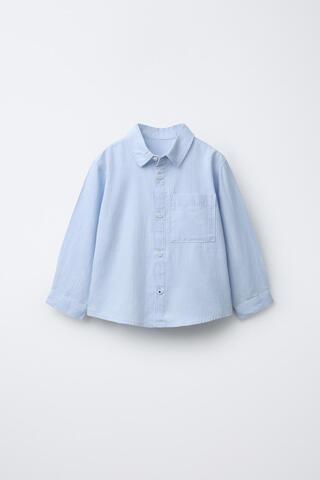 ZARA ОДНОТОННАЯ РУБАШКА С КАРМАНОМ, СИНИЙ