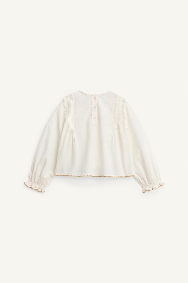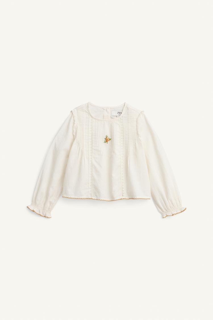 ZARA ОДНОТОННАЯ РУБАШКА С ВЫШИВКОЙ, ЭКРЮ