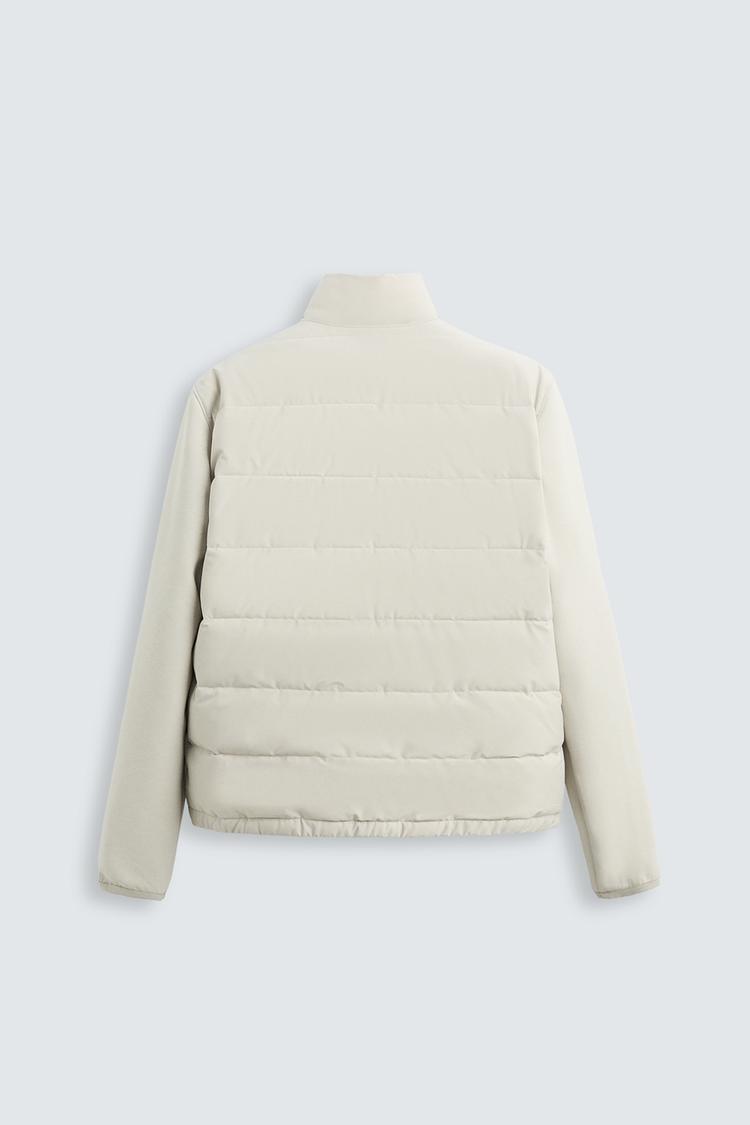 Стеганая куртка с высоким воротником. Длинные рукава из эластичной ткани. Передние карманы, внутренний карман. Эластичный низ. Застежка-молния.