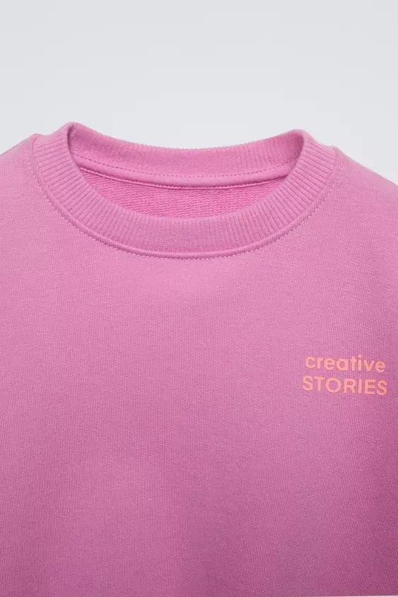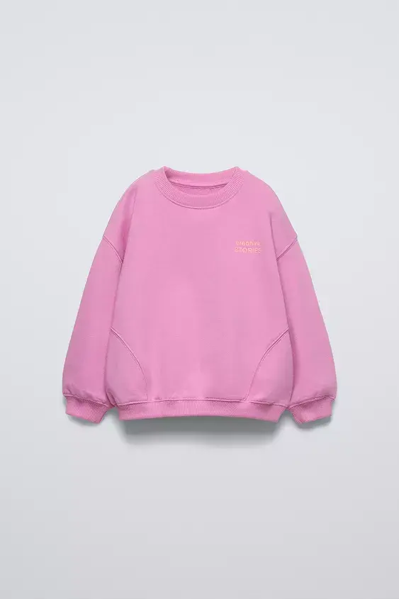 ZARA ОДНОТОННАЯ ТОЛСТОВКА С НАДПИСЬЮ, ТЕМНО-РОЗОВЫЙ