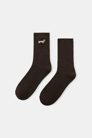 ZARA ОДНОТОННЫЕ НОСКИ С СОБАКОЙ, КОРИЧНЕВЫЙ