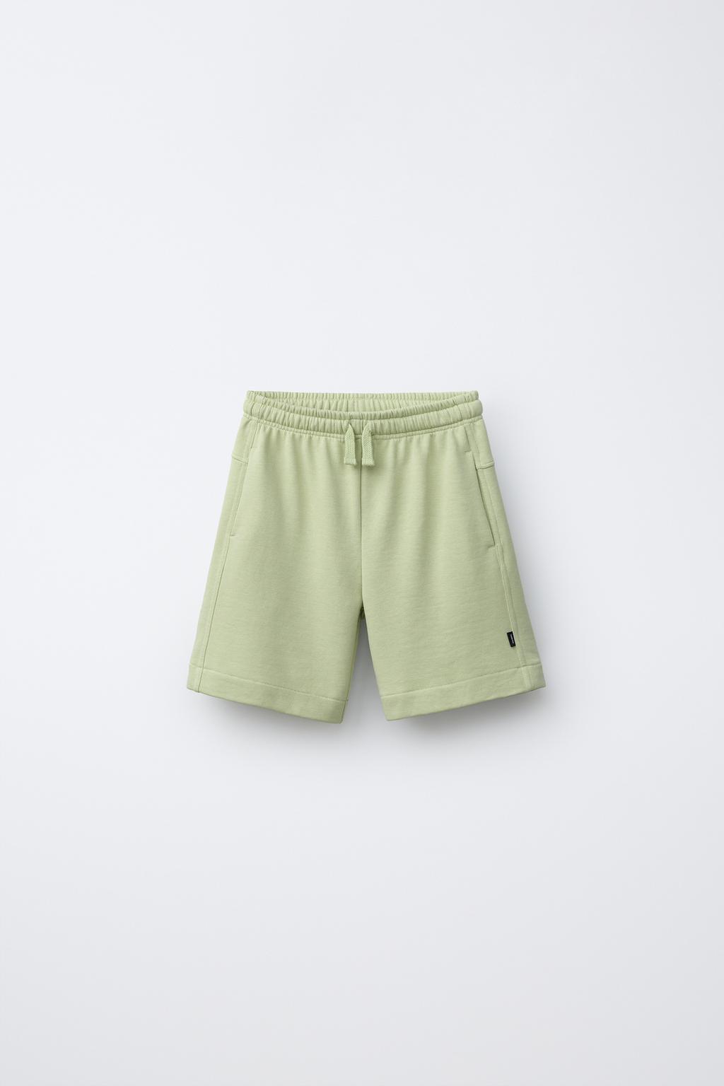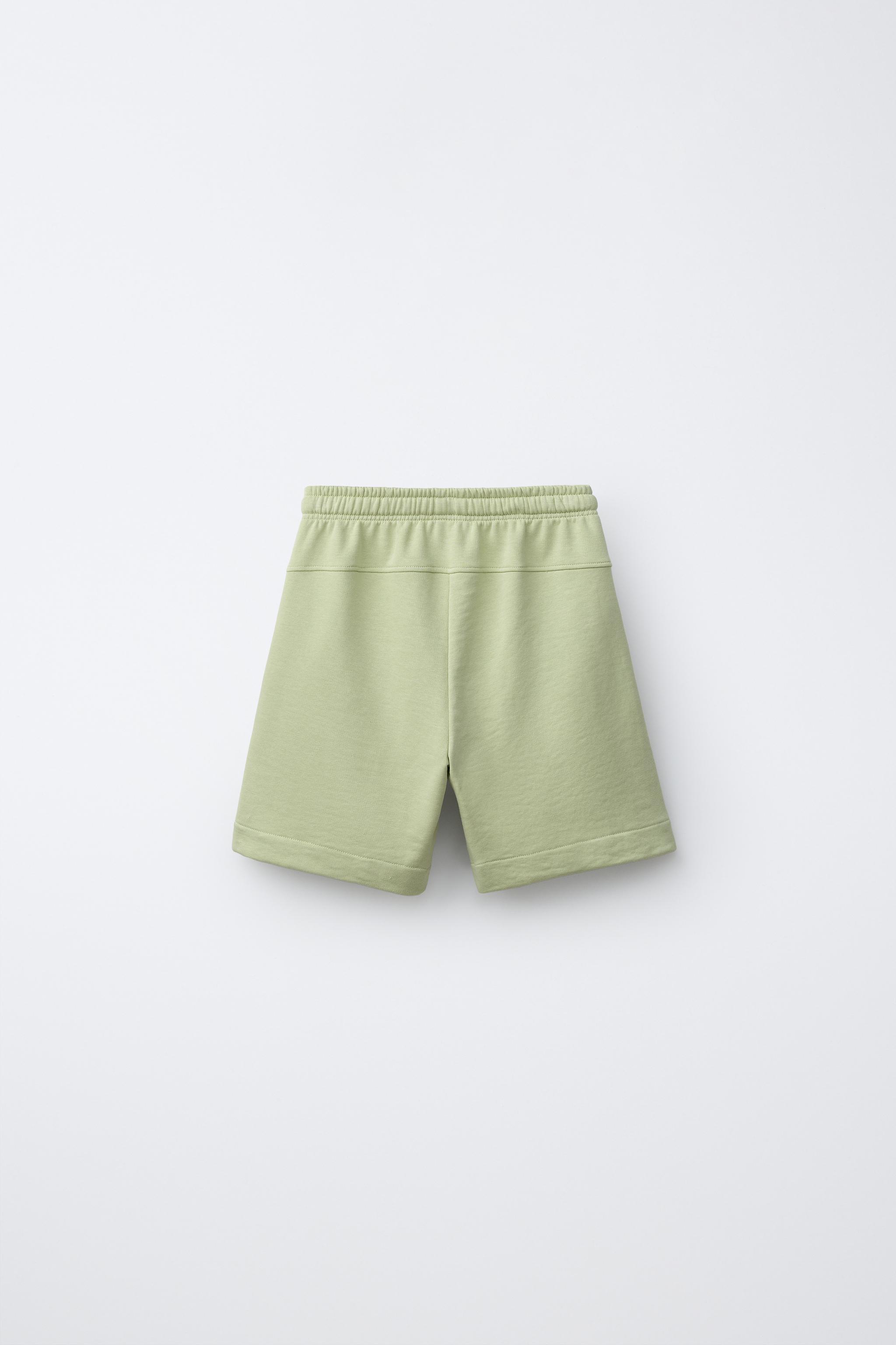 ZARA ОДНОТОННЫЕ ШОРТЫ, ЛИНЯЛЫЙ ЗЕЛЕНЫЙ