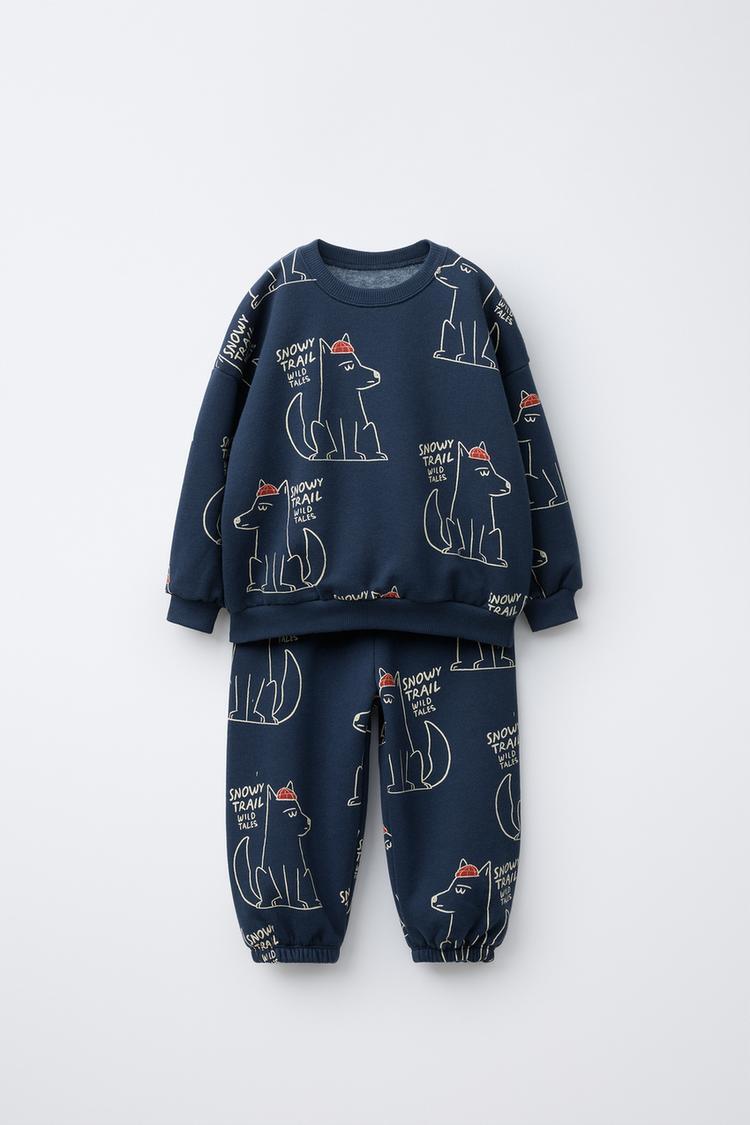 ZARA ОДНОТОННЫЙ КОМПЛЕКТ ИЗ ТОЛСТОВКИ И БРЮК-ДЖОГГЕРОВ С ПРИНТОМ, СИНИЙ