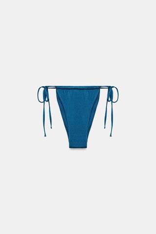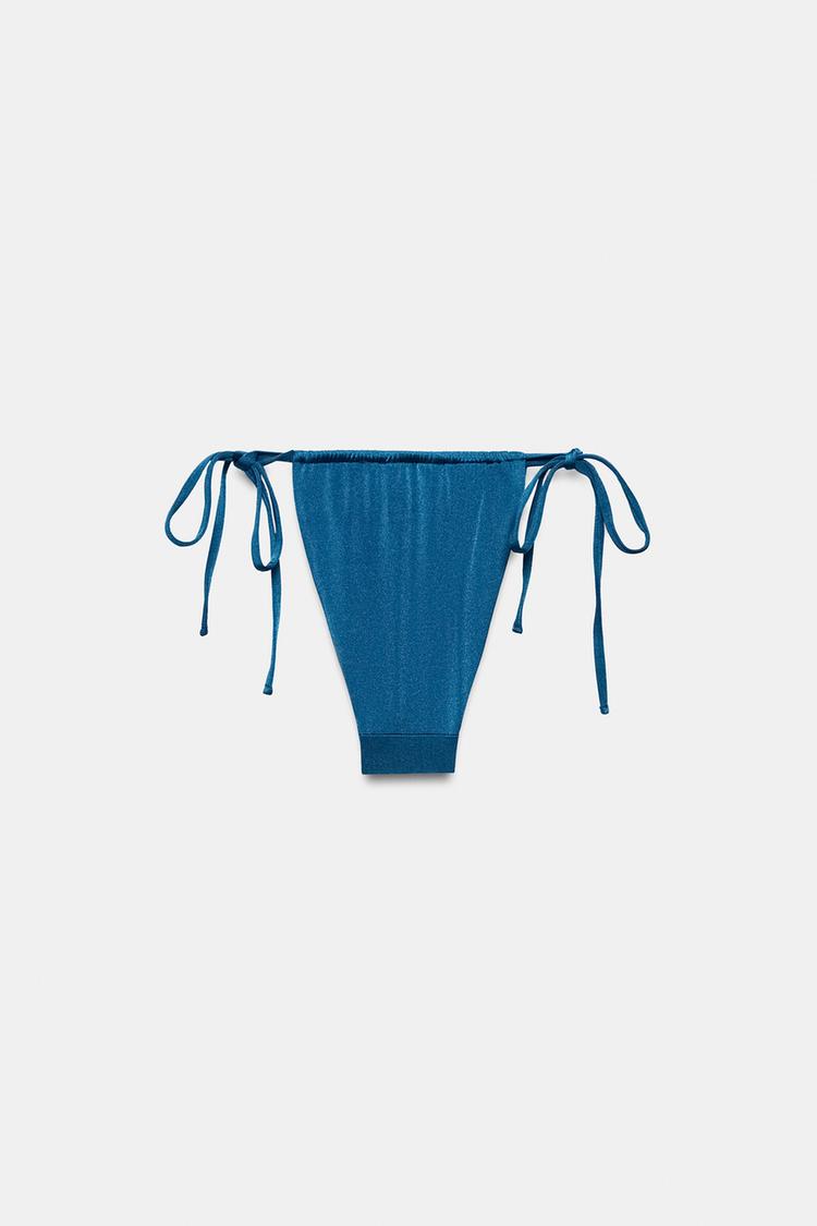 ZARA ОДНОТОННЫЙ НИЗ ОТ БИКИНИ С ЗАВЯЗКАМИ, СИНИЙ