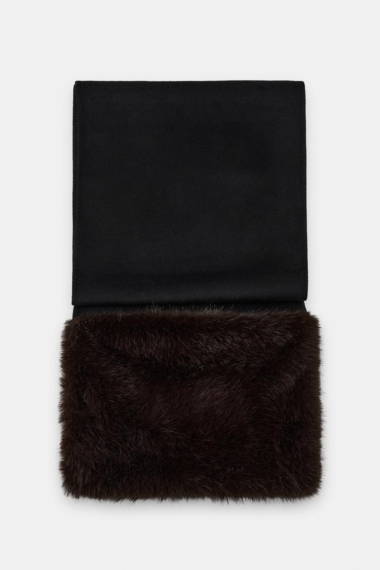 ZARA ОДНОТОННЫЙ ШАРФ ИЗ ШЕРСТИ С МЕХОВЫМ ЭФФЕКТОМ, ЧЕРНЫЙ