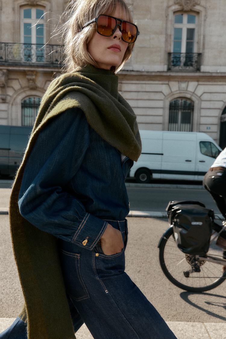ZARA ОДНОТОННЫЙ ШАРФ С НЕОБРАБОТАННЫМИ КРОМКАМИ, ХАКИ