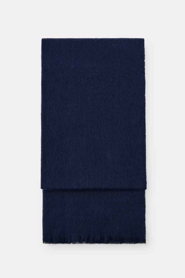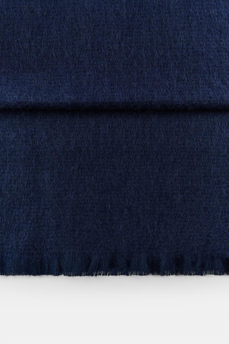 ZARA ОДНОТОННЫЙ ШАРФ С НЕОБРАБОТАННЫМИ КРОМКАМИ, МОРСКОЙ СИНИЙ