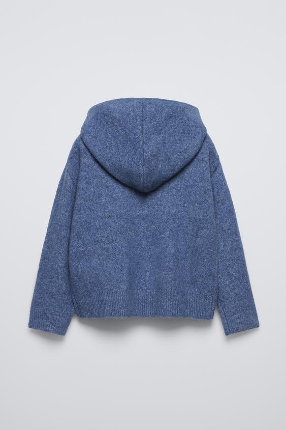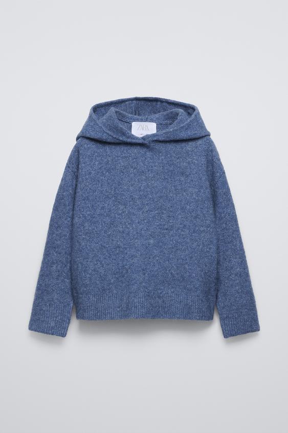 ZARA ОДНОТОННЫЙ СВИТЕР С КАПЮШОНОМ, ГЛУБОКИЙ СИНИЙ