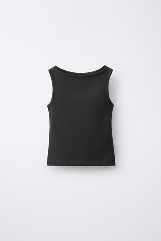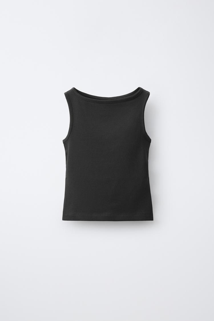 ZARA ОДНОТОННЫЙ ТОП ИЗ МОДАЛА, АНТРАЦИТОВО-СЕРЫЙ