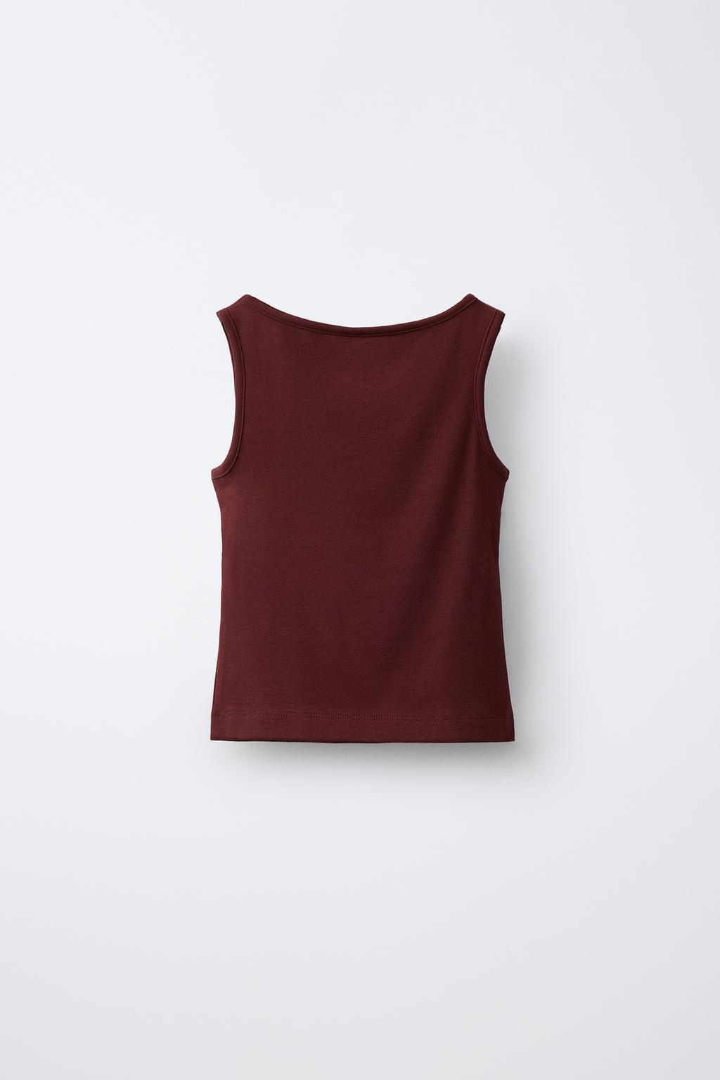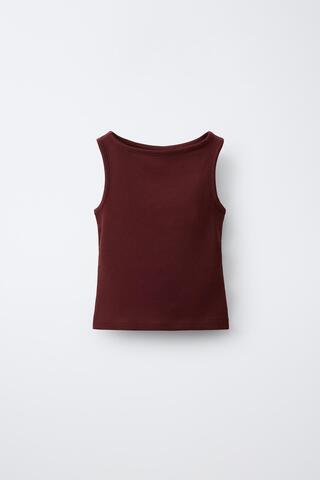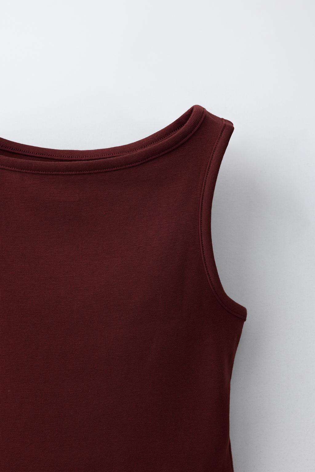 ZARA ОДНОТОННЫЙ ТОП ИЗ МОДАЛА, БУРГУНДИ