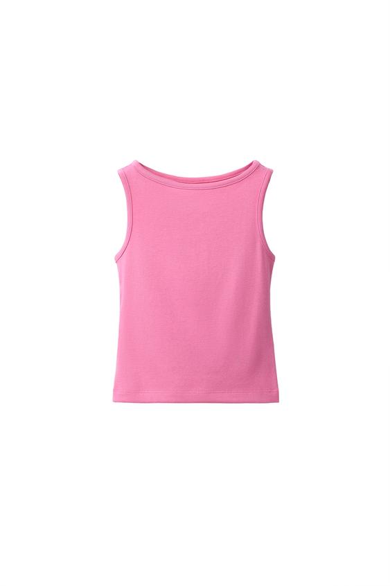 ZARA ОДНОТОННЫЙ ТОП ИЗ МОДАЛА, РОЗОВЫЙ