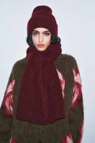 ZARA ОДНОТОННЫЙ ТРИКОТАЖНЫЙ ШАРФ, БУРГУНДИ