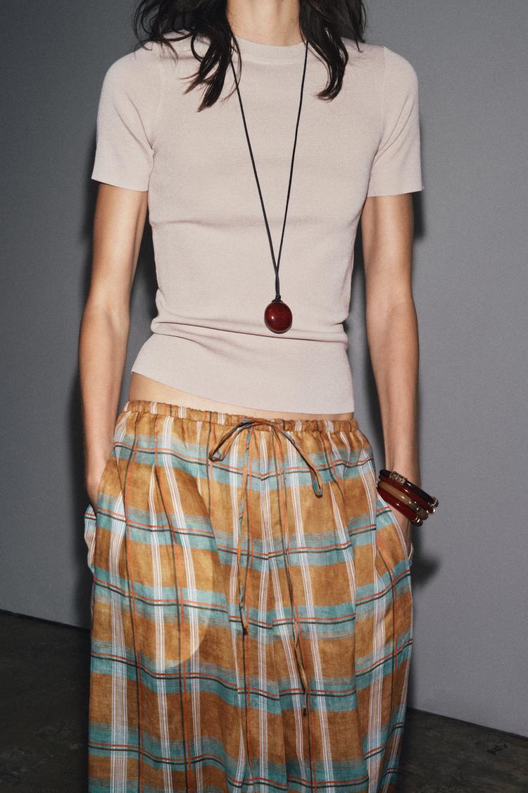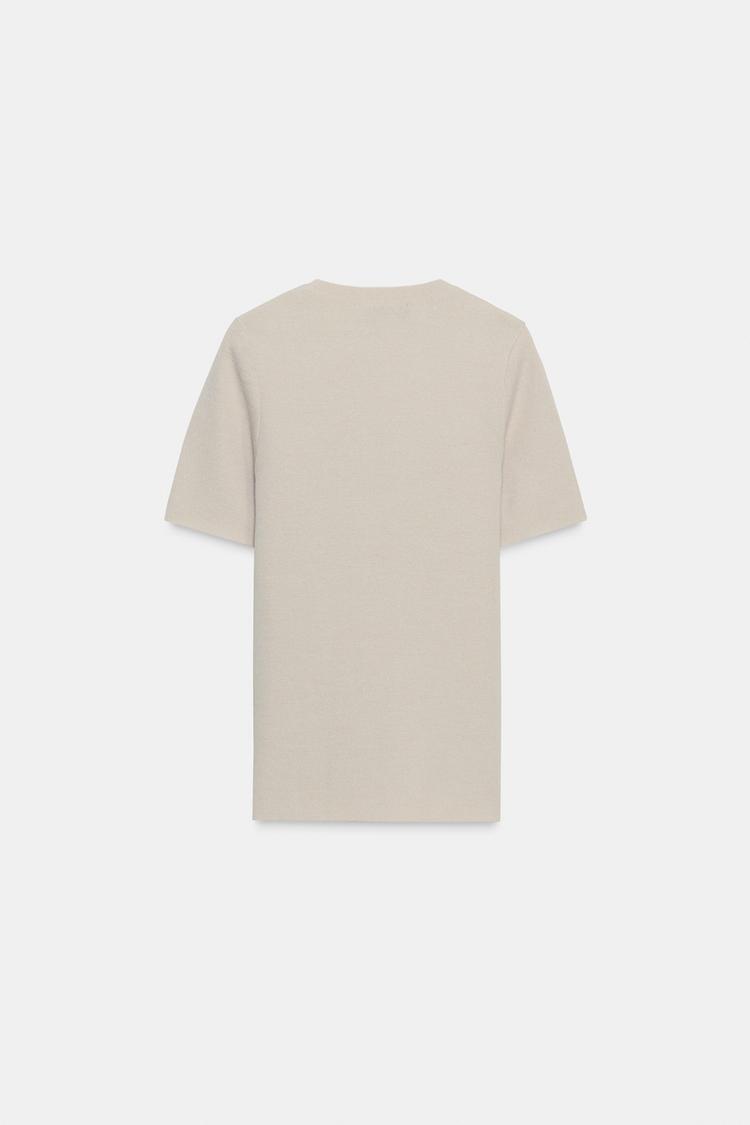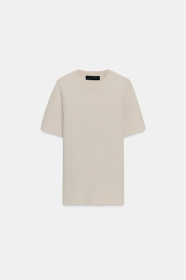 ZARA ОДНОТОННЫЙ ТРИКОТАЖНЫЙ ТОП С КОРОТКИМИ РУКАВАМИ, ЦВЕТ ЛЬДА