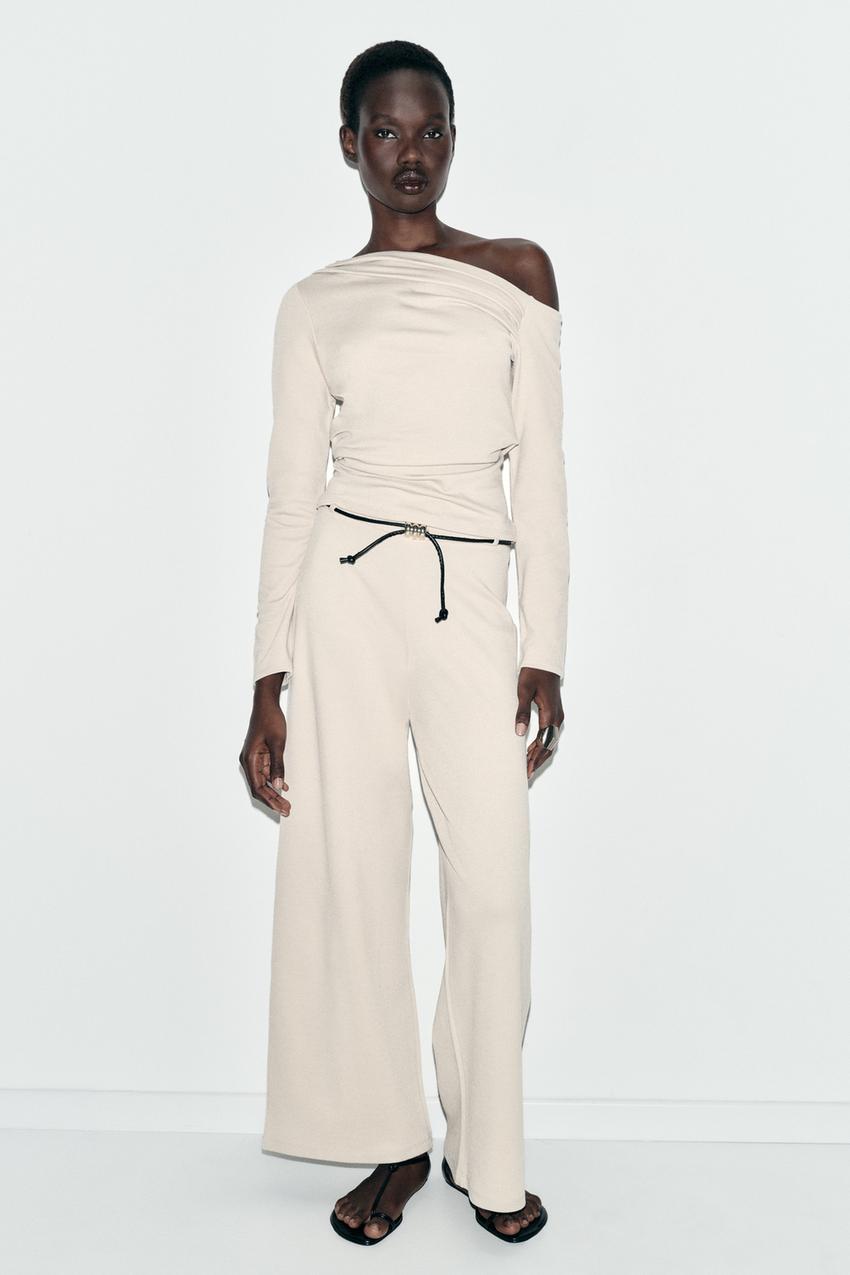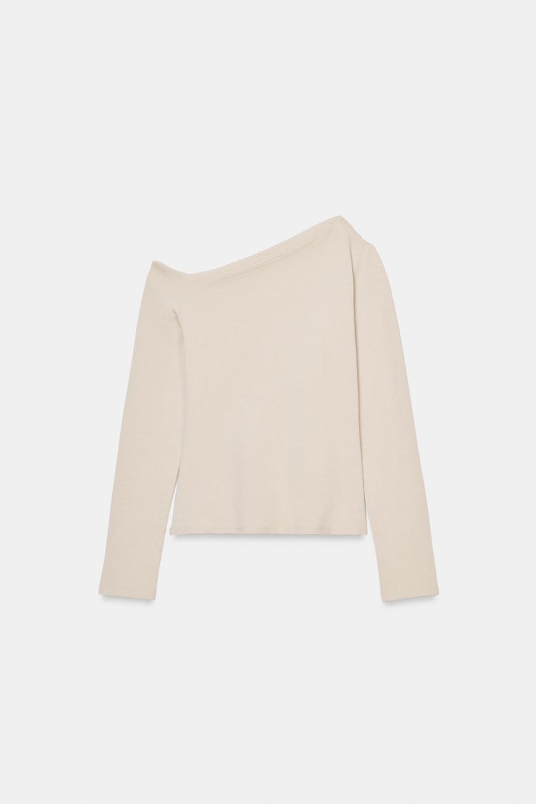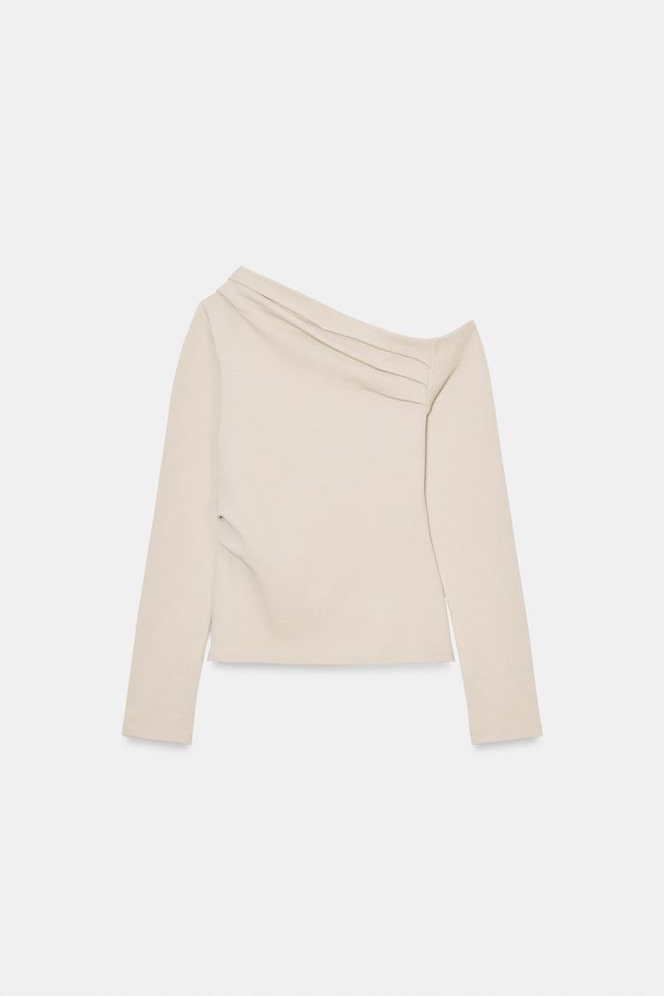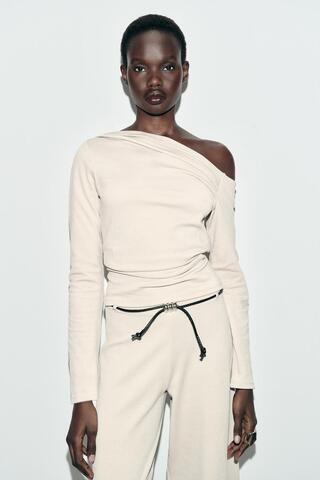 ZARA ТОП АСИММЕТРИЧНОГО КРОЯ ИЗ ТКАНИ ПИКЕ, ЭКРЮ