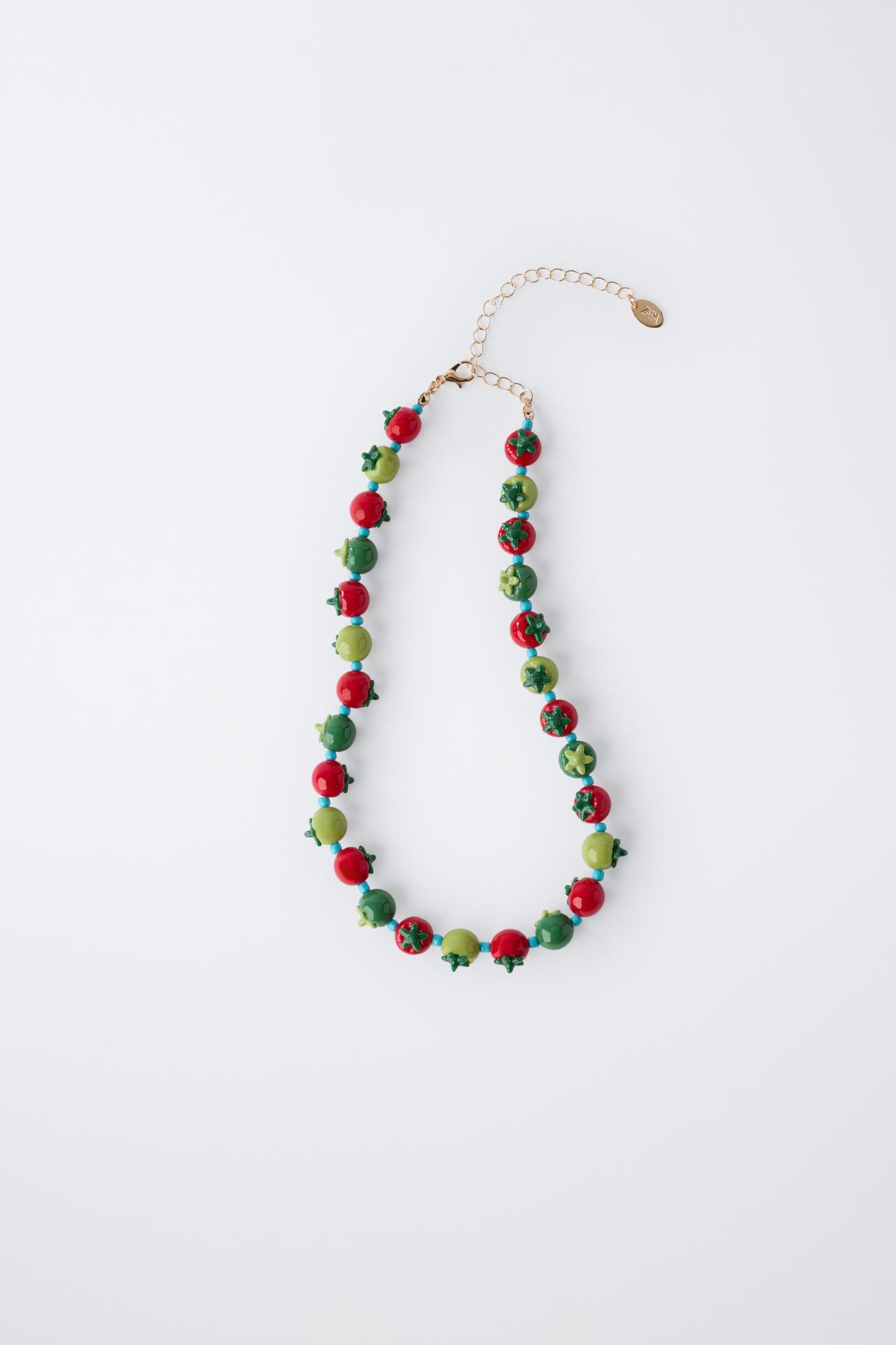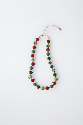 ZARA ОЖЕРЕЛЬЕ ИЗ БУСИН «ТОМАТЫ», КРАСНЫЙ