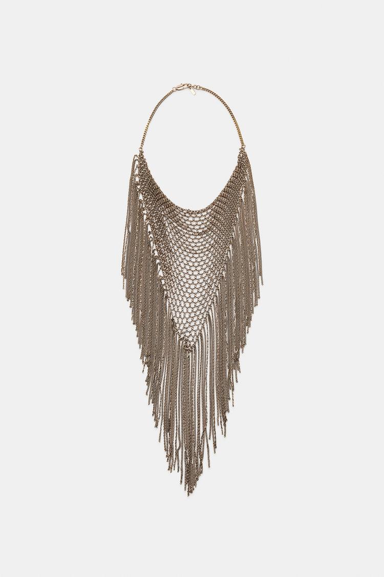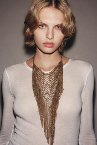 ZARA ОЖЕРЕЛЬЕ-НАГРУДНИК С БАХРОМОЙ, ЗОЛОТИСТЫЙ