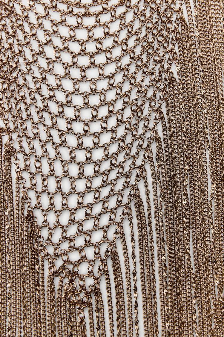 Ожерелье-нагрудник из металлических звеньев. Подвески из многочисленной бахромы в тон. Застежка-карабин.