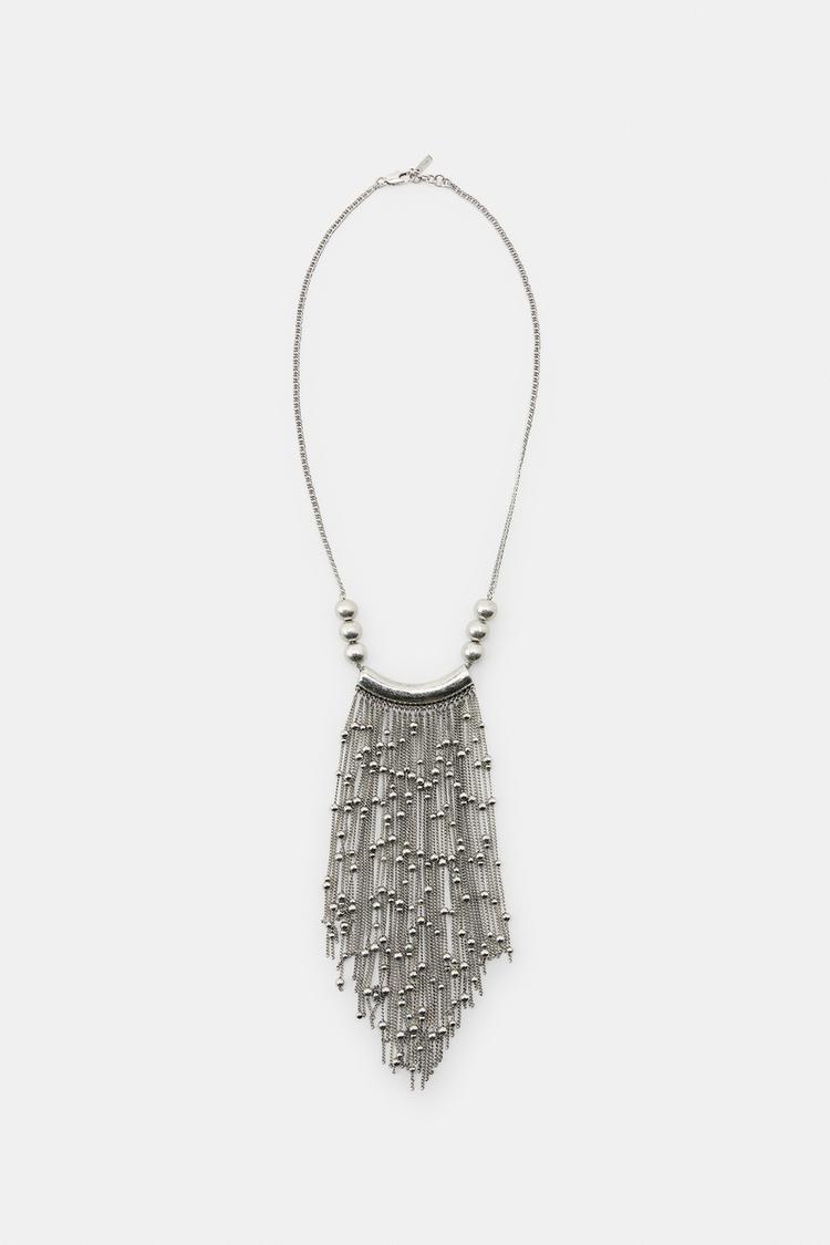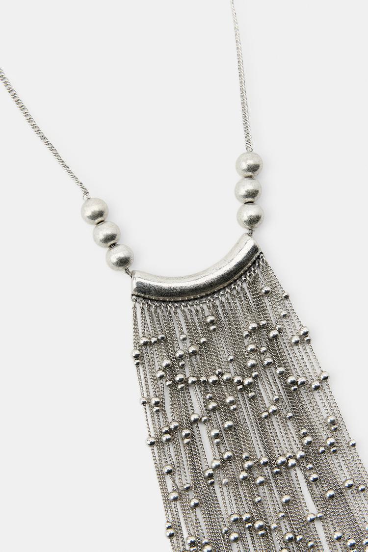 ZARA ОЖЕРЕЛЬЕ С БУСИНАМИ И ЦЕПОЧКАМИ, СЕРЕБРИСТЫЙ