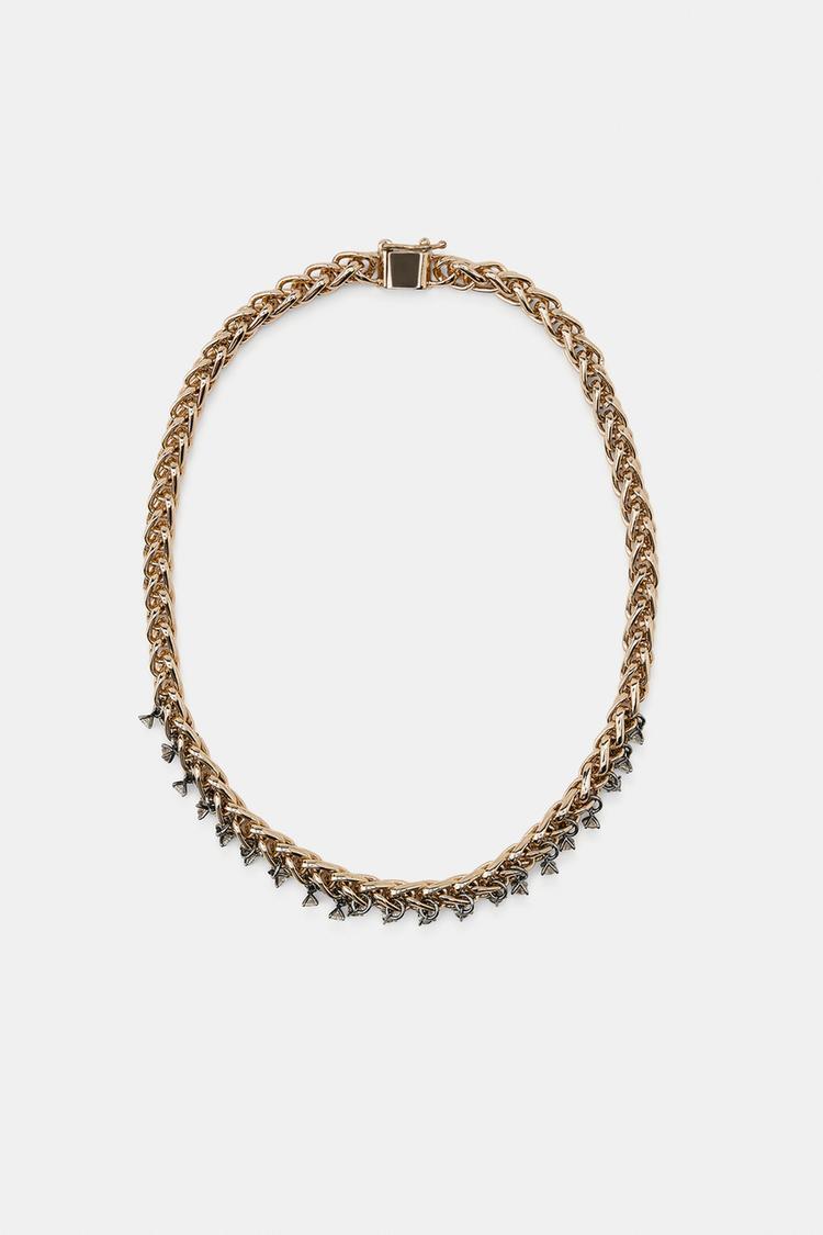 ZARA ОЖЕРЕЛЬЕ С КОНТРАСТНЫМИ ЗВЕНЬЯМИ И ПОДВЕСКАМИ, ЗОЛОТИСТЫЙ