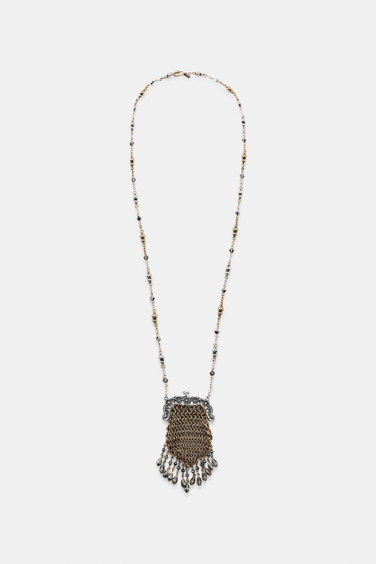 ZARA ОЖЕРЕЛЬЕ С ПОДВЕСКОЙ «СУМОЧКА» И СТРАЗАМИ, ЗОЛОТОЙ/СЕРЕБРЯНЫЙ