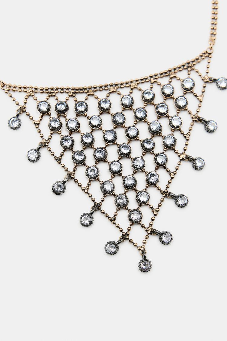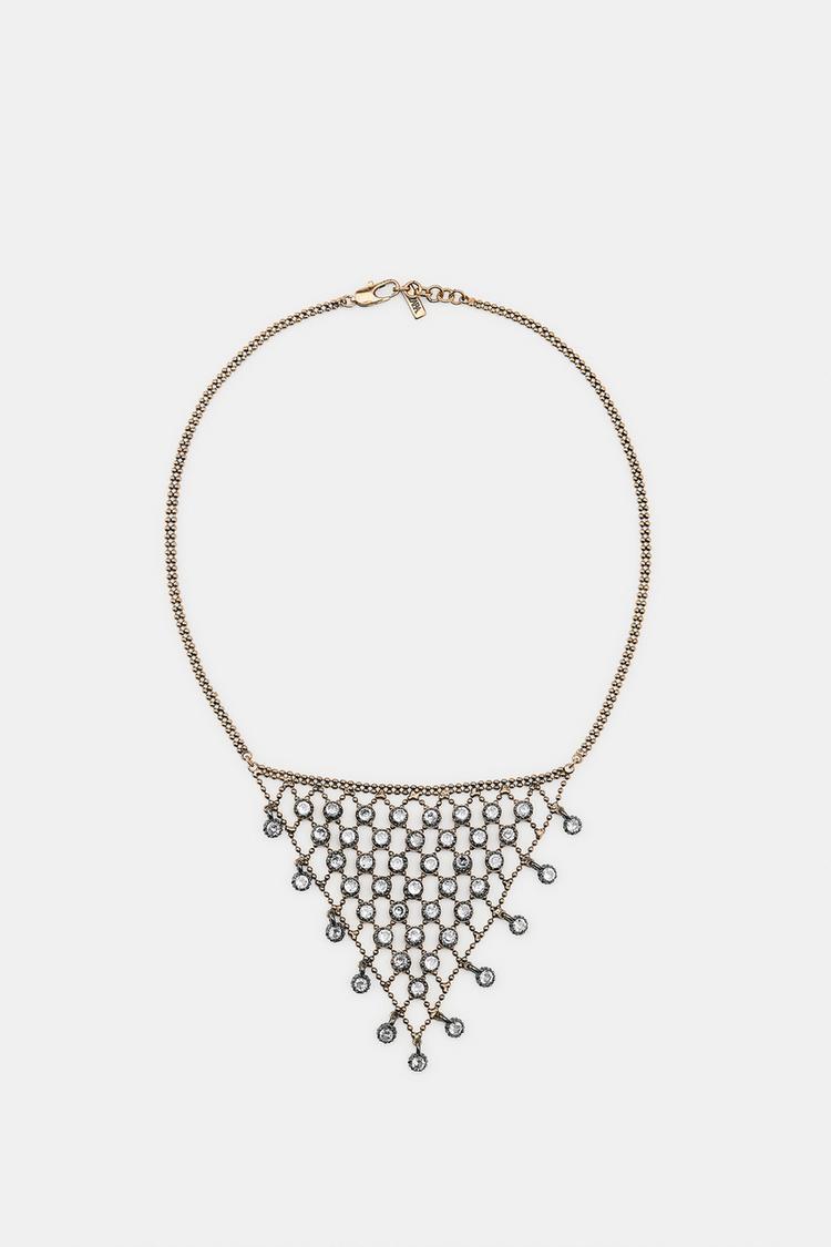 ZARA ОЖЕРЕЛЬЕ «ТРЕУГОЛЬНИК» СО СТРАЗАМИ, ЗОЛОТИСТЫЙ