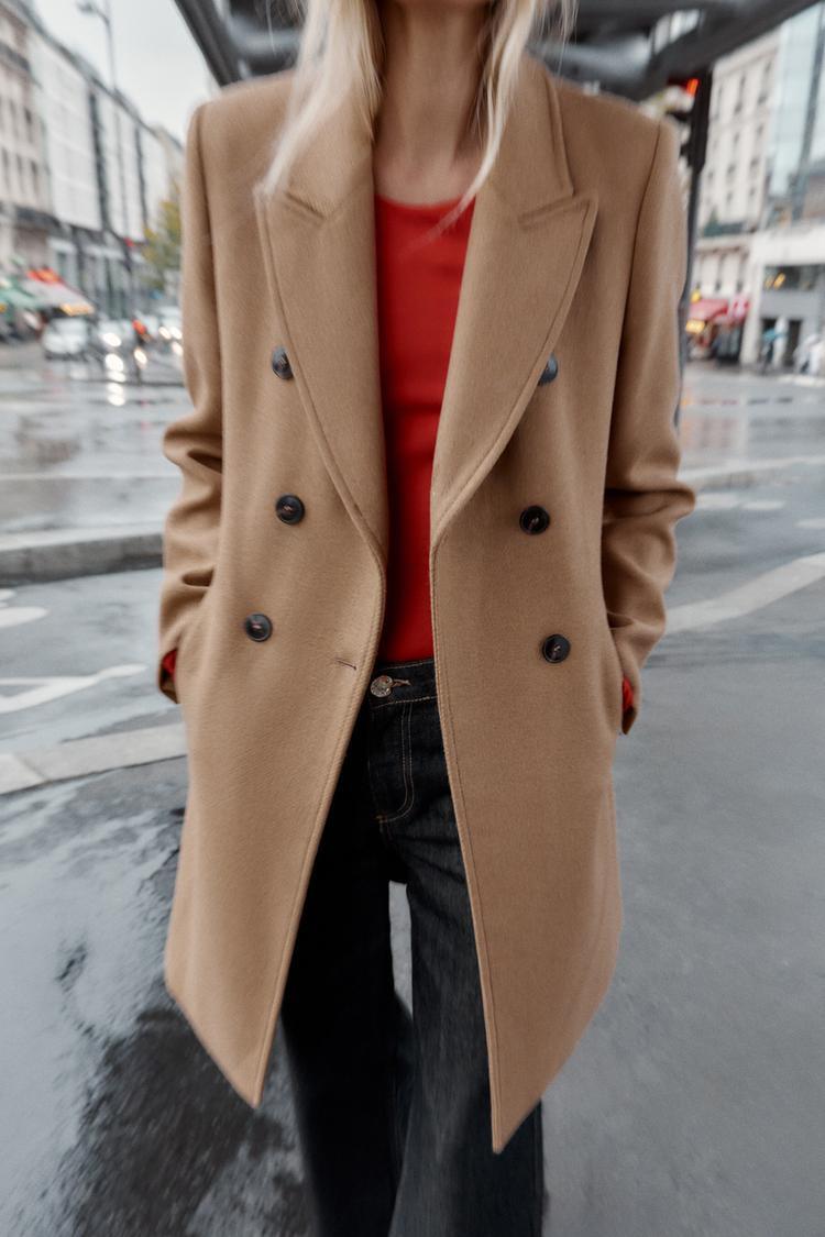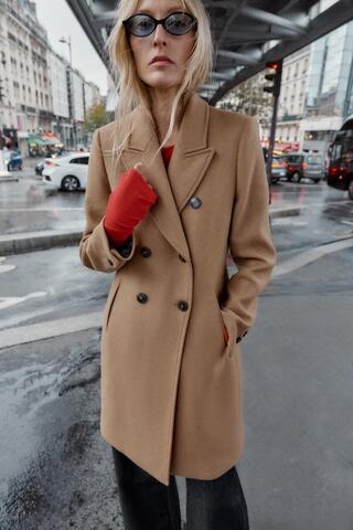 ZARA ПАЛЬТО ДВУБОРТНОЕ С ПОГОНАМИ, РЫЖЕВАТО-КОРИЧНЕВЫЙ