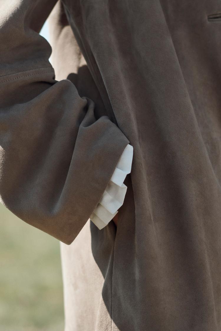 ZARA ПАЛЬТО ИЗ 100% КОЖИ, ШОКОЛАДНЫЙ