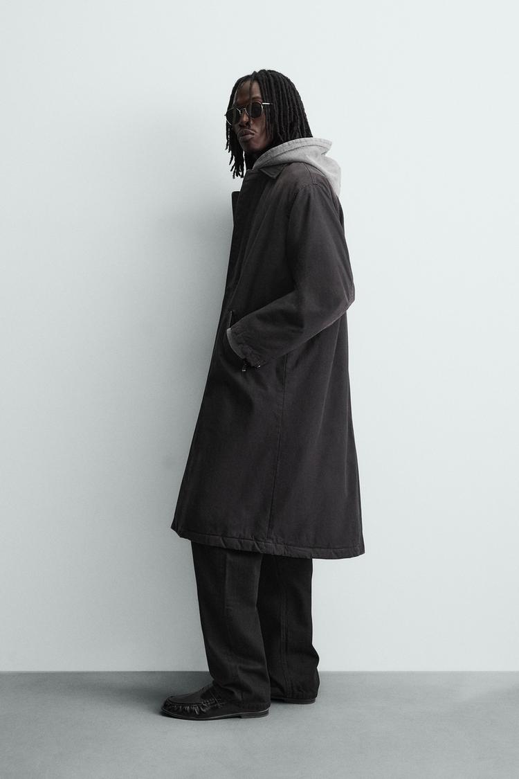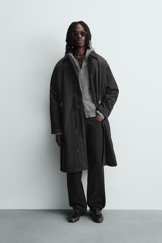 ZARA ПАЛЬТО ИЗ ДЕНИМА С ЭФФЕКТОМ ПОТЕРТОСТИ, ЧЕРНЫЙ
