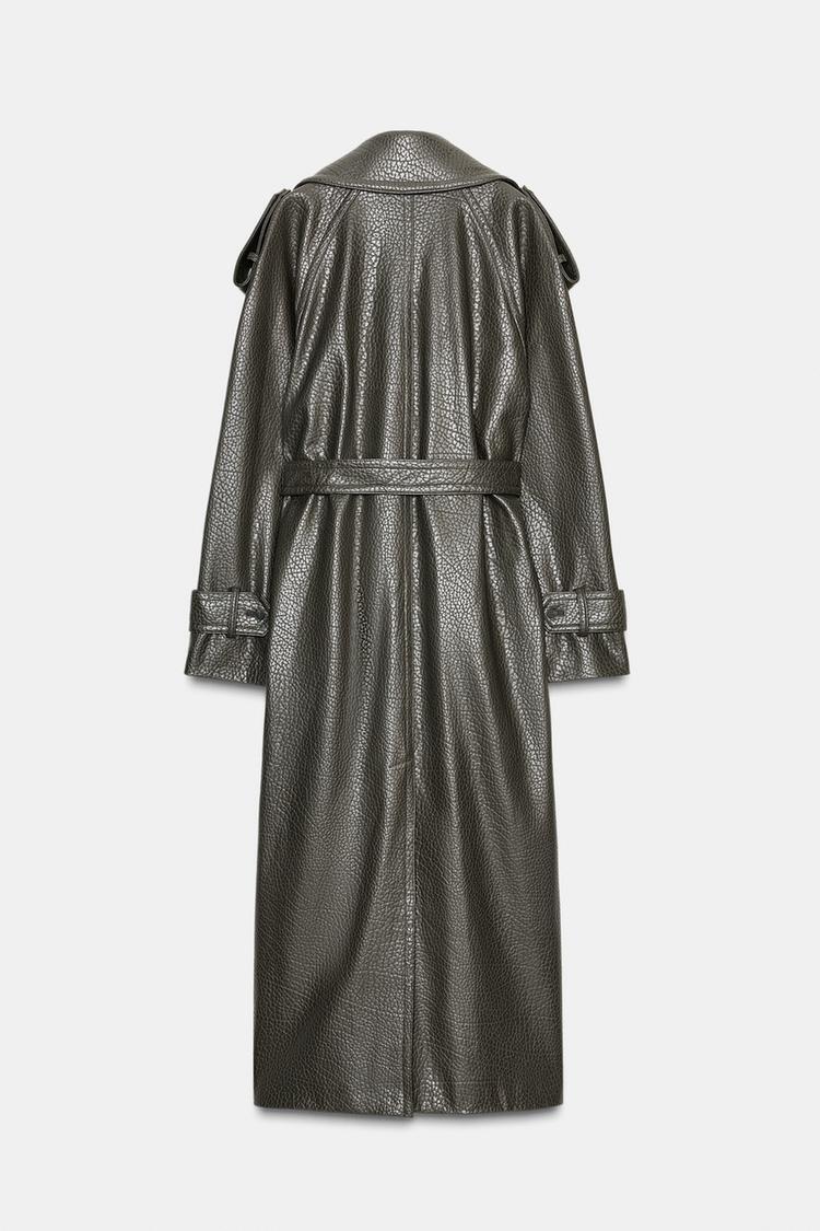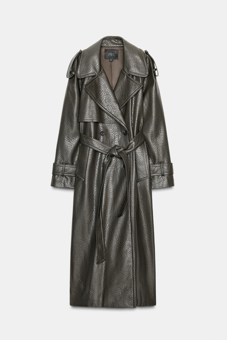 ZARA ПАЛЬТО ИЗ ИСКУССТВЕННОЙ КОЖИ, ХАКИ