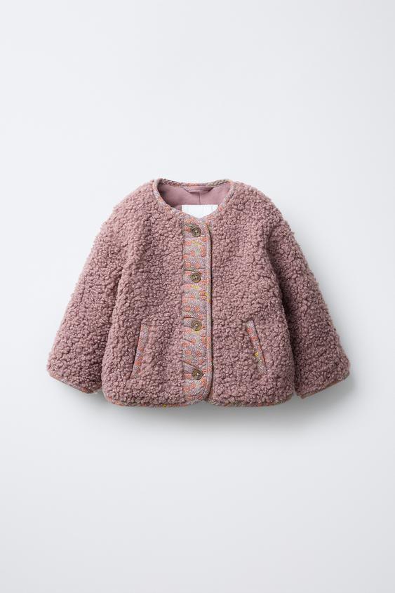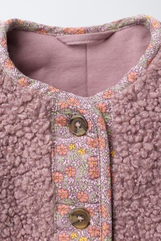 ZARA ПАЛЬТО ИЗ ИСКУССТВЕННОЙ ОВЧИНЫ С ЦВЕТОЧНЫМ ПРИНТОМ НА ПОДКЛАДКЕ, МАДЖЕНТА