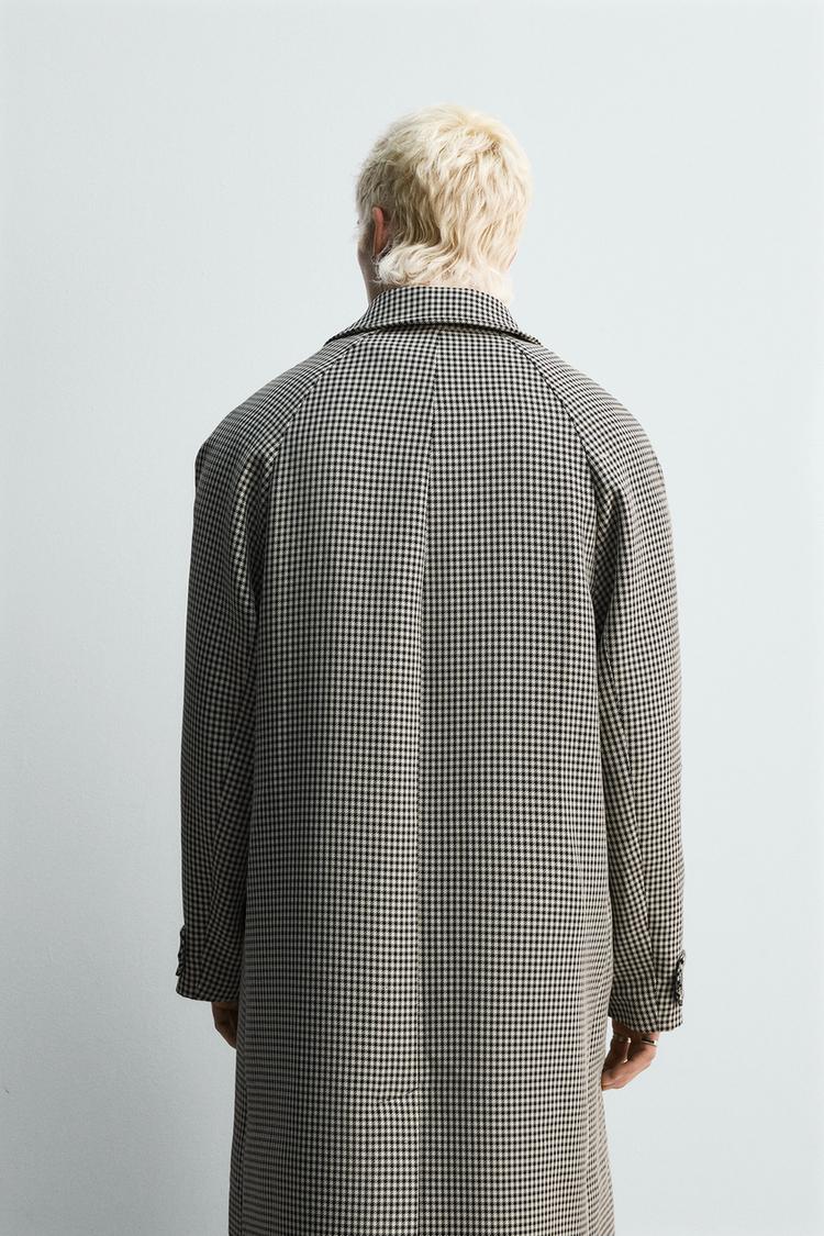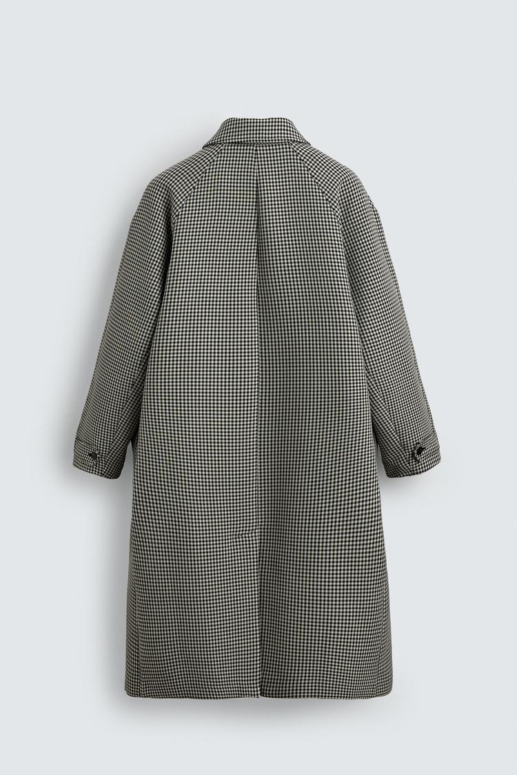 ZARA ПАЛЬТО ИЗ РЕЛЬЕФНОЙ ТКАНИ В КЛЕТКУ LIMITED EDITION, БЕЛЫЙ/ЧЕРНЫЙ