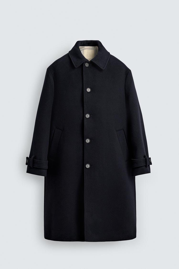 ZARA ПАЛЬТО ИЗ ШЕРСТИ И КАШЕМИРА, СИНИЙ