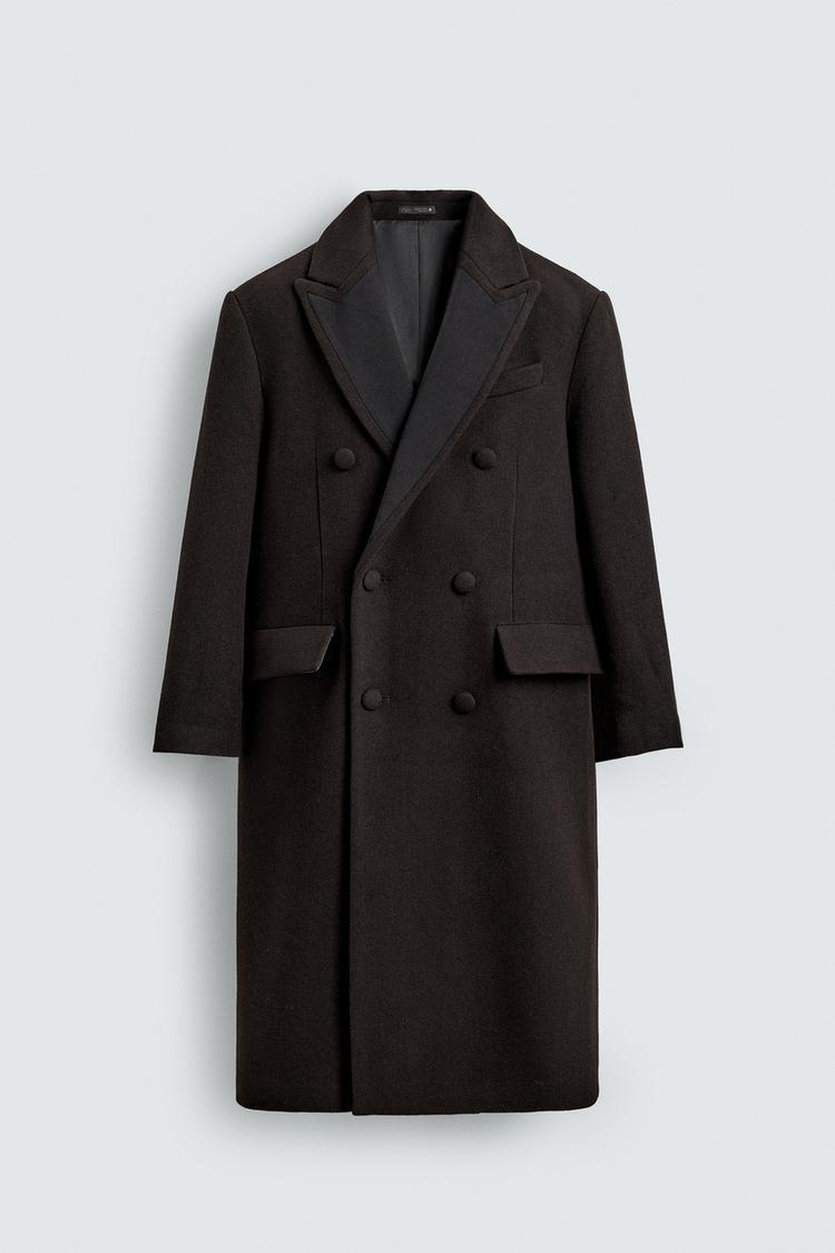 ZARA ПАЛЬТО ИЗ ШЕРСТИ С КОНТРАСТНЫМИ ЛАЦКАНАМИ, ТЕМНО-КОРИЧНЕВЫЙ